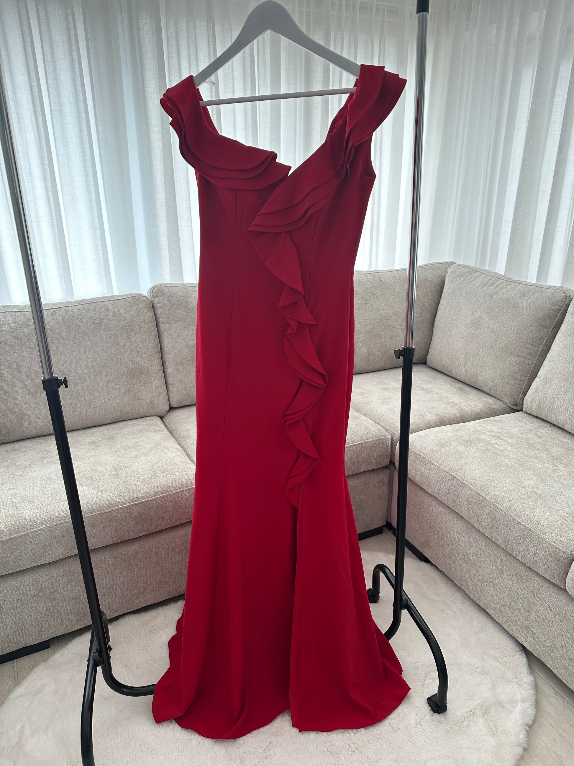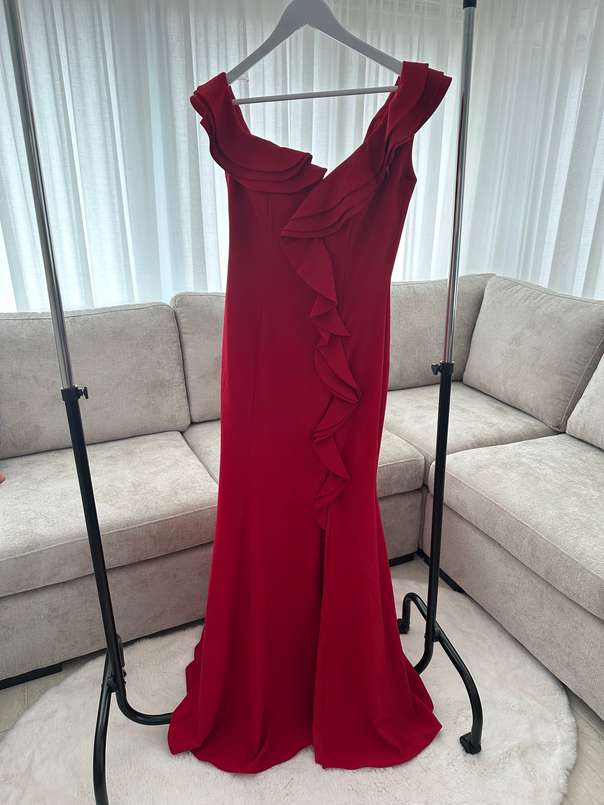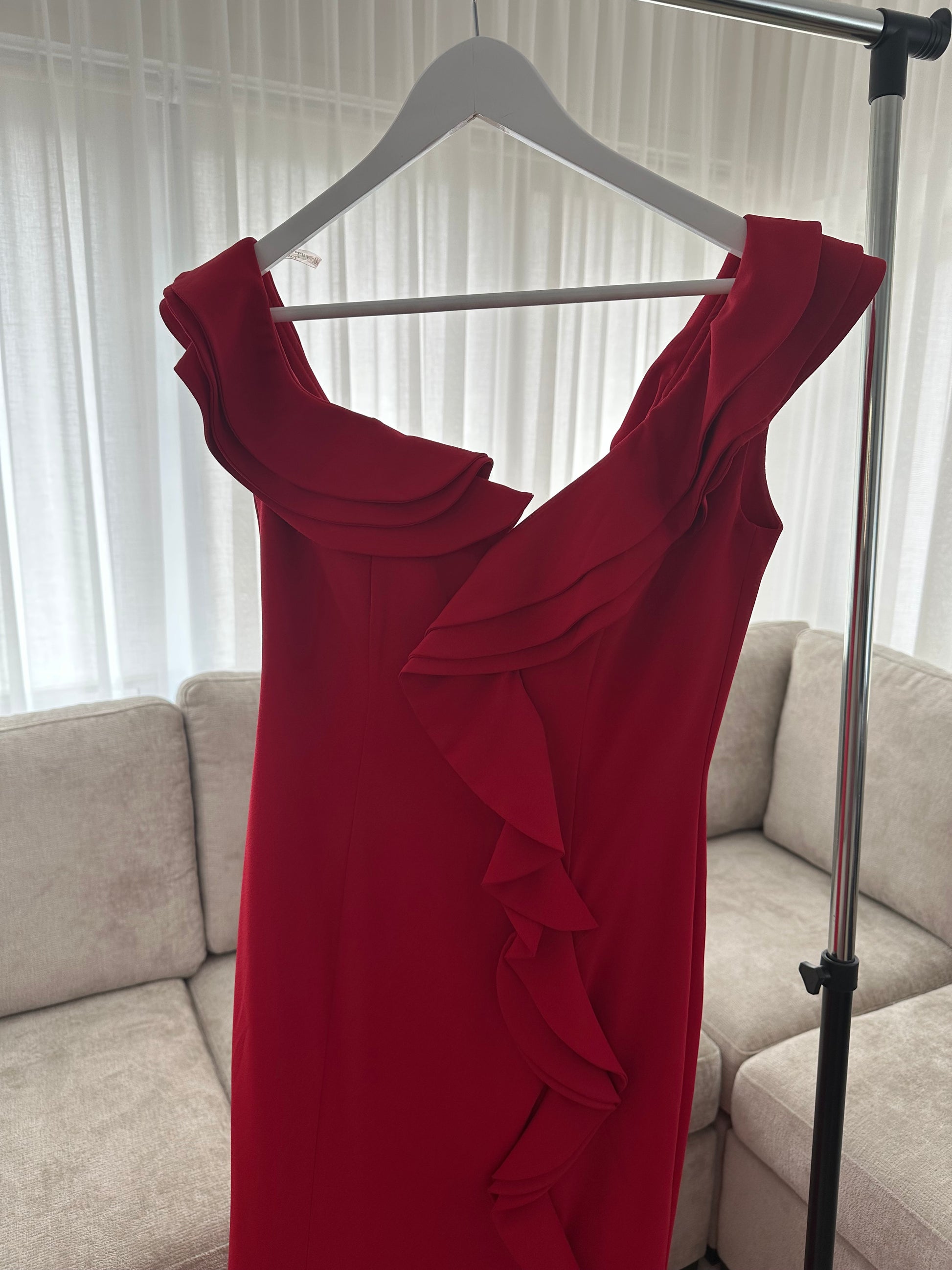 Rode jurk met Spaanse look. Split aan de voorkant nu in de Sale, helemaal nieuw.